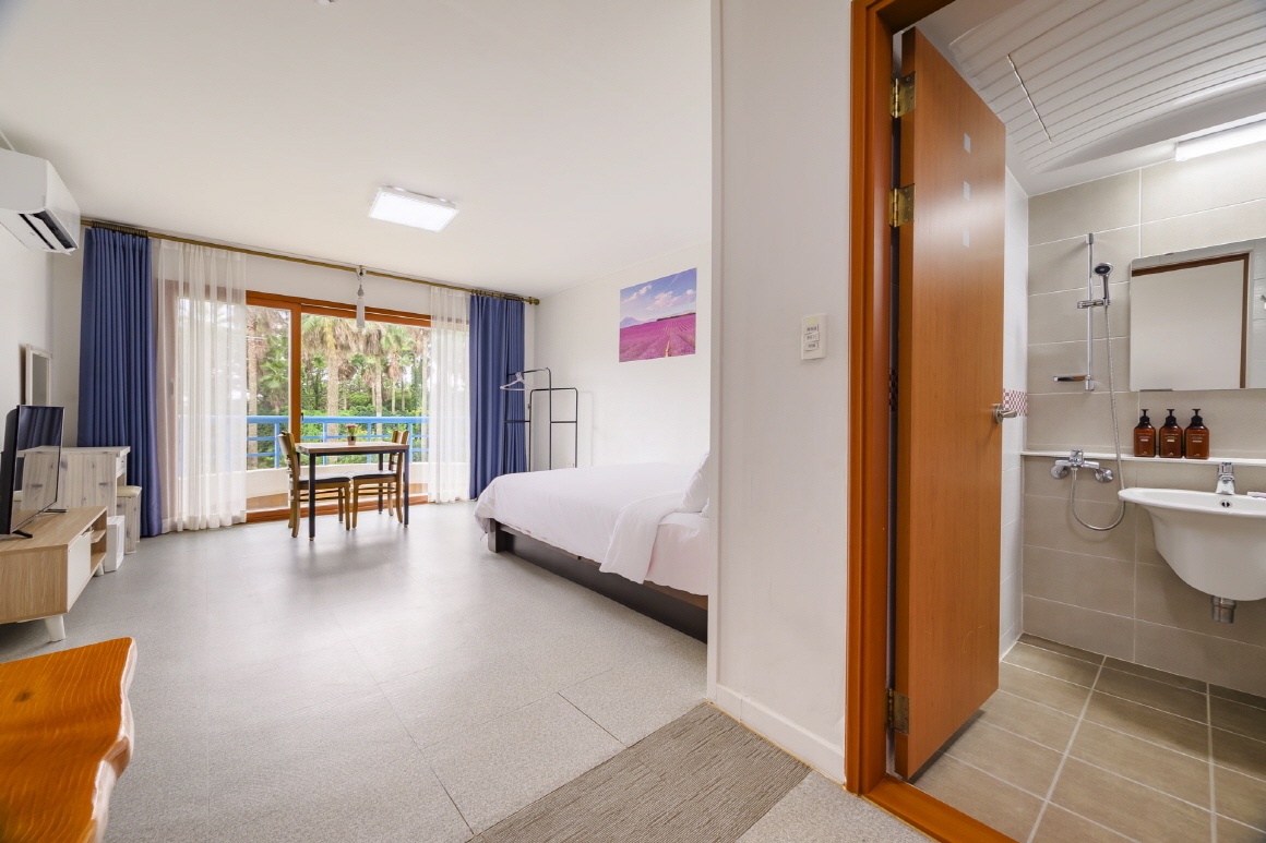 | 객실비품 | 킹더블침대, 냉장고, 전자레인지, 인덕션, 전기주전자, 에어컨, 식탁, 좌탁, 취사도구, TV, 압력밥솥, 헤어드라이기, 욕실용품, 무료Wifi |