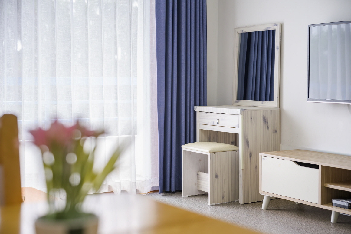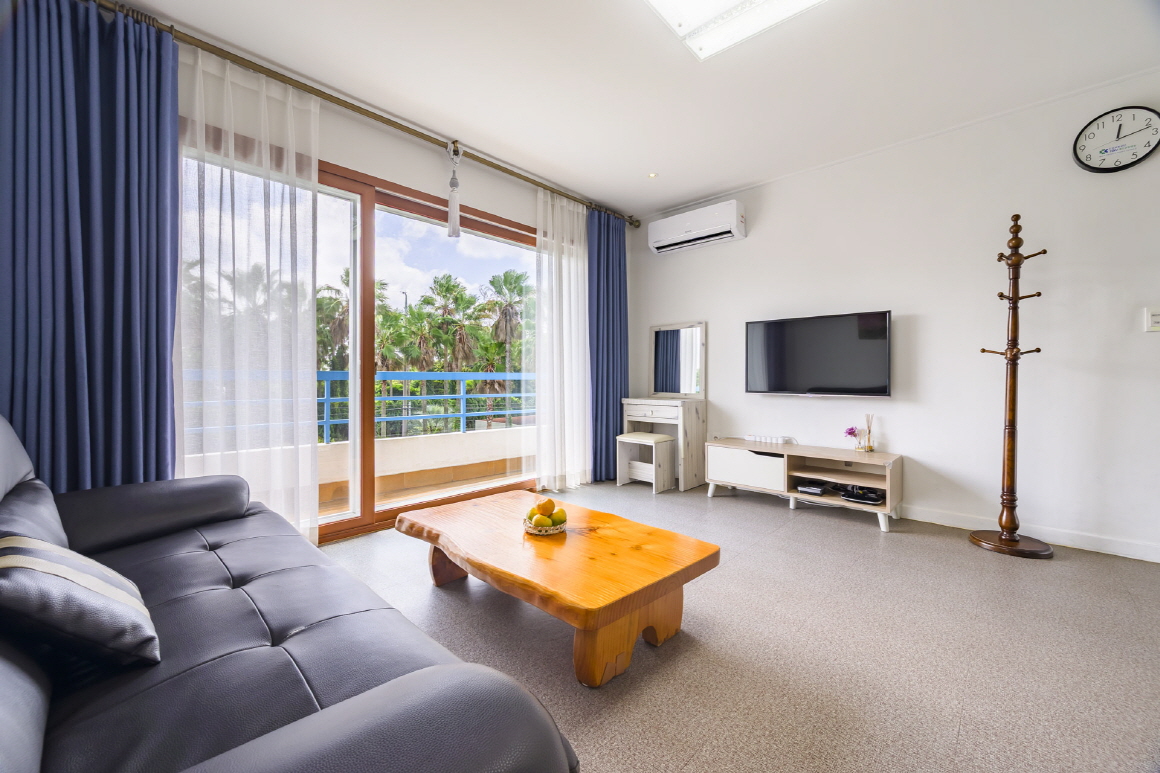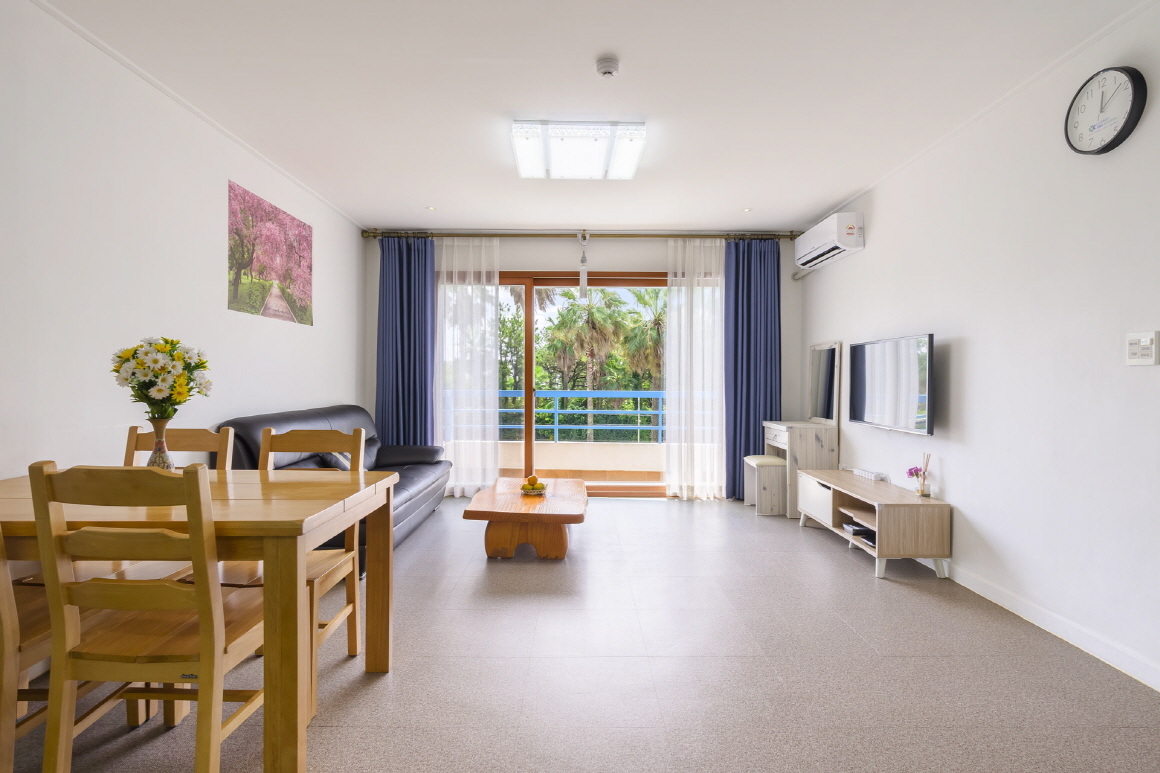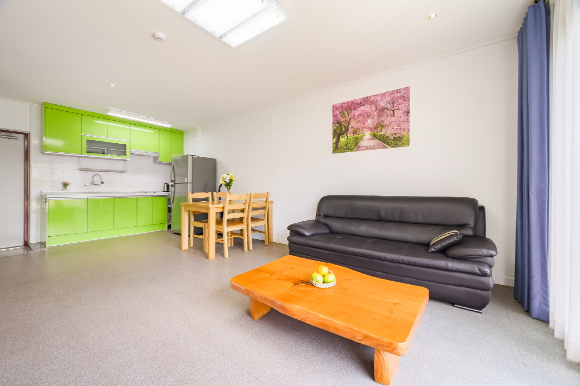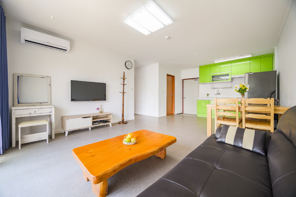 | 객실비품 | 킹더블침대, 大냉장고, 식탁, 전자레인지, 인덕션, 전기주전자, 에어컨, 좌탁, 취사도구, TV, 압력밥솥, 헤어드라이기, 욕실용품, 무료Wifi, 정수기 |